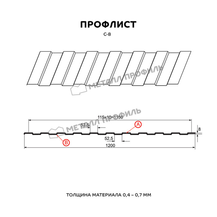Профлист Металл Профиль С-8 0,5 NormanMP RAL 9003 Белый | B