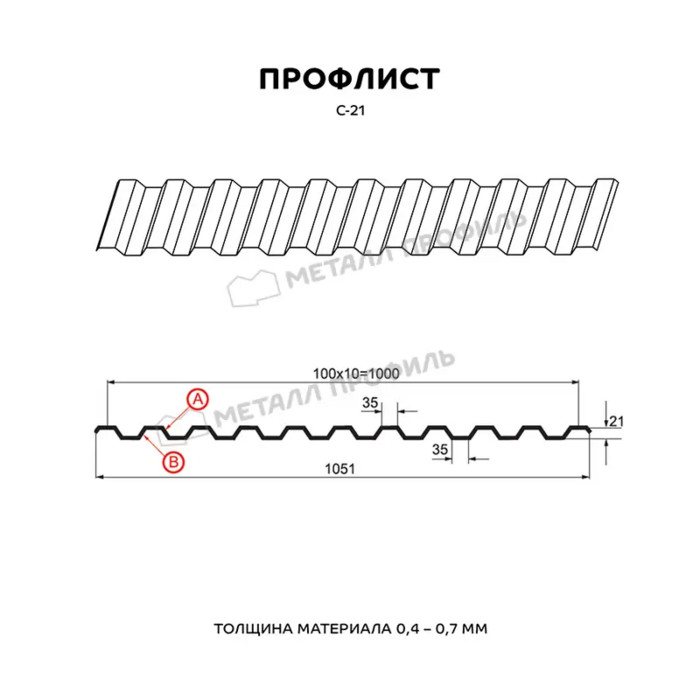 Профлист Металл-Профиль С-21 NormanMP 0.5 мм RAL 7024 Серый графит